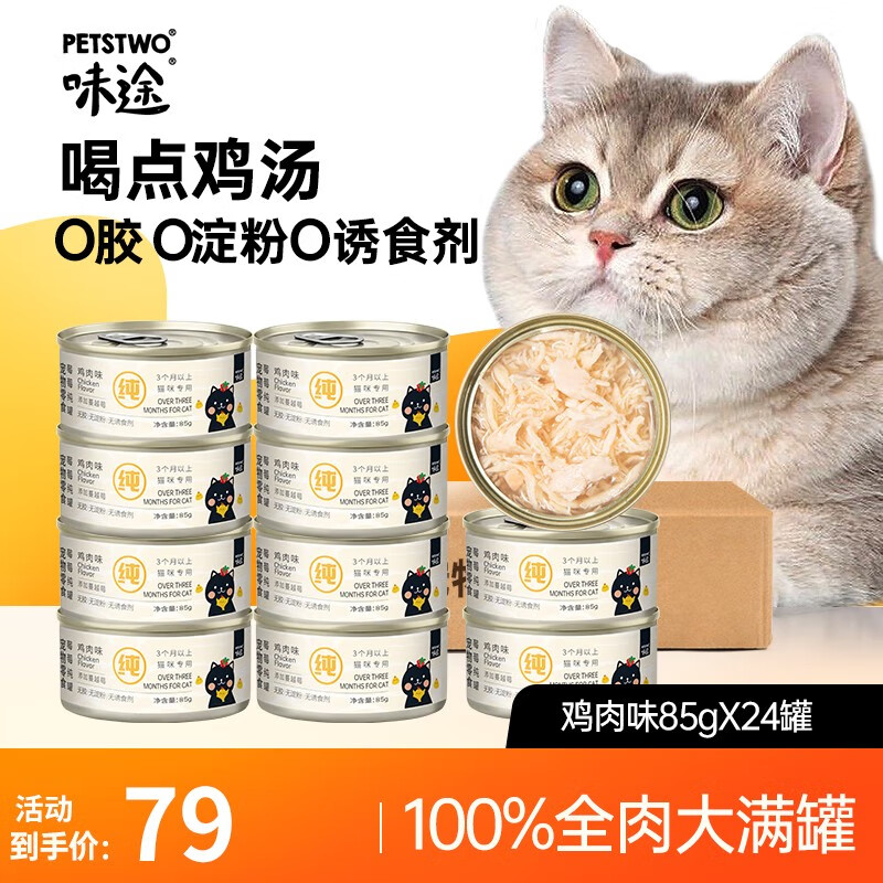 盼斯兔(PETSTWO)猫罐头零食湿粮解馋补充营养补钙猫咪零食整箱成幼猫0胶无添加剂 鸡肉口味 【85g*24罐】