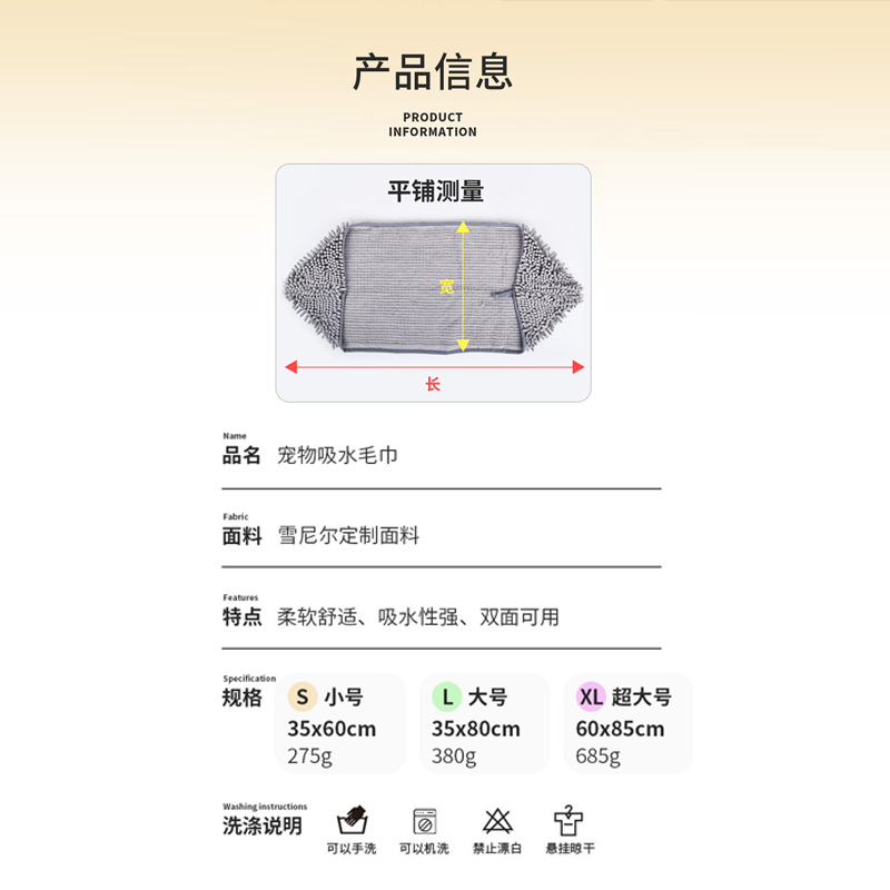 珍宠星球 宠物毛巾狗狗浴巾猫吸水毛巾洗澡擦干毛巾猫咪泰迪金毛洗澡用品小号50X33cm灰色