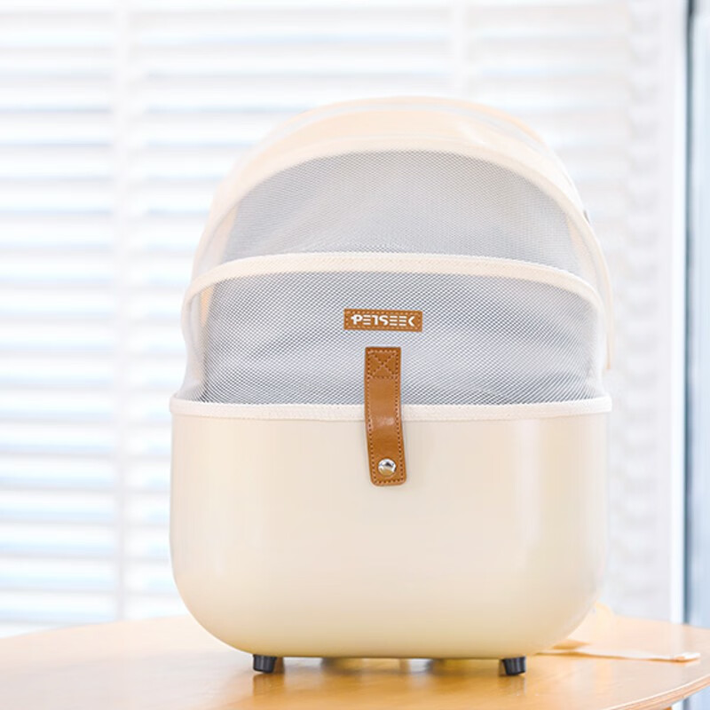 hoopet华元宠物猫包外出便携背包春秋猫咪书包狗狗航空箱大号手提猫袋双肩太空舱大容量猫笼 米黄色新升级ABS宝贝包(内附软垫) 适用:猫10斤内-狗6斤内
