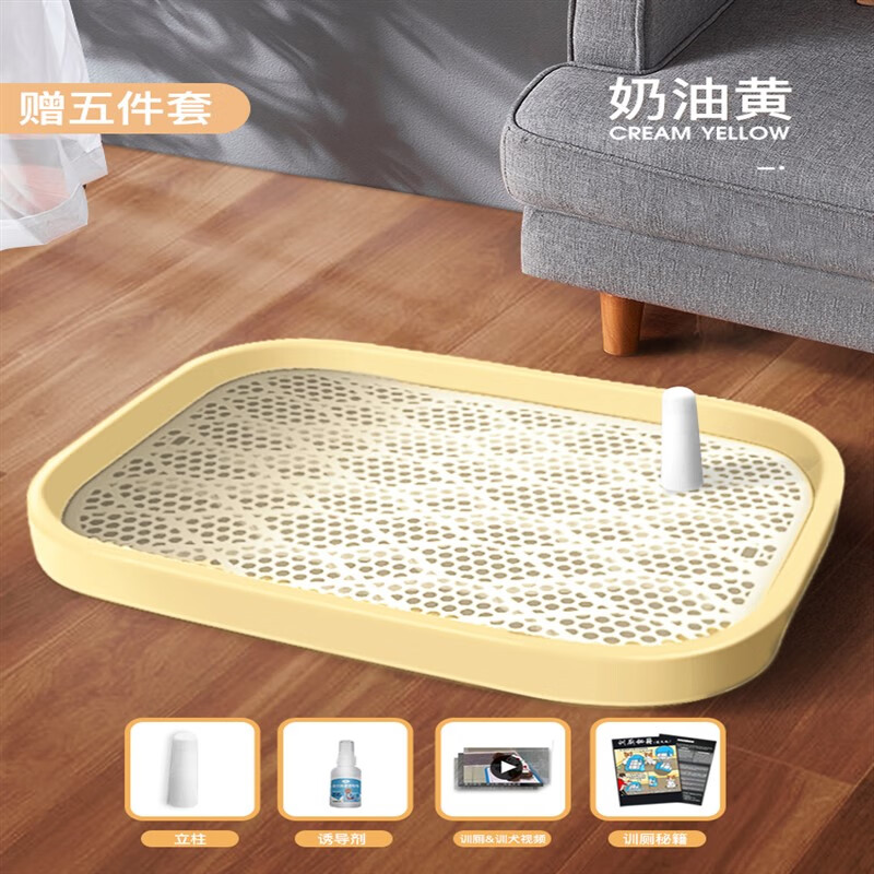 狗狗厕所中型大型犬宠物小型用品大全便便神器尿尿盆专用尿盘屎盆 【教不会包退】超大号奶油黄(5件套)
