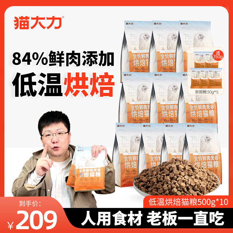 猫大力低温烘焙猫粮无谷成猫幼猫专用全价鸡肉猫粮橘猫布偶英短通用粮 500g*10(囤货装)
