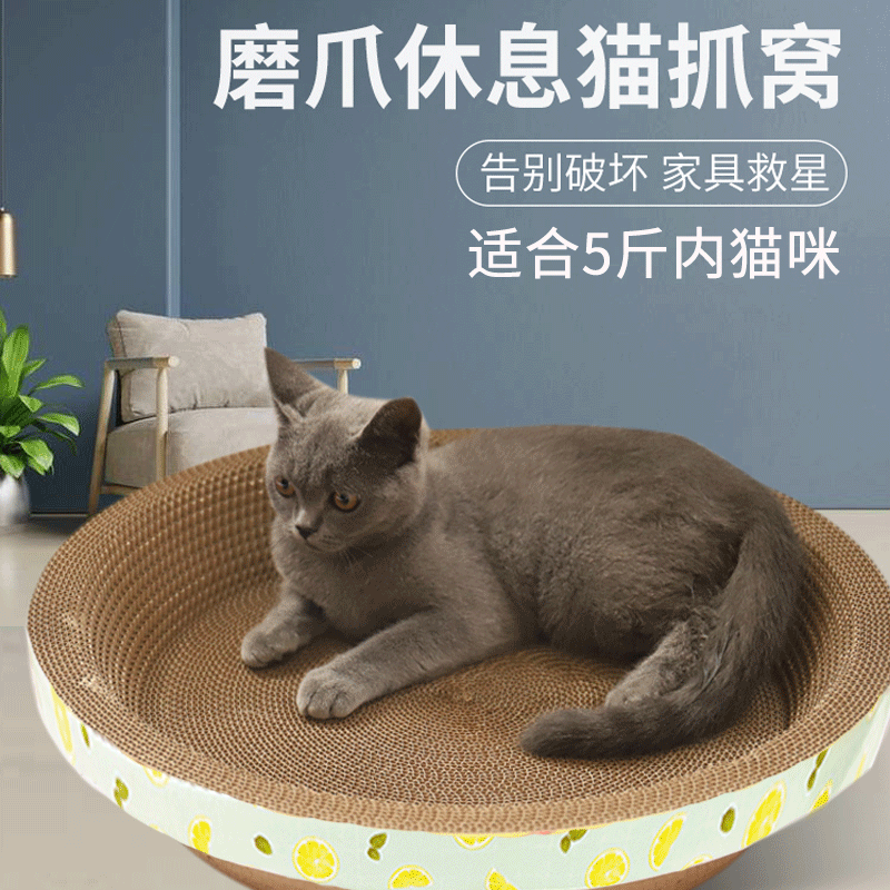 猫抓板猫沙发大号靠墙立式猫爪窝板猫抓板盆立式瓦楞纸器耐磨猫窝宠物猫玩具 椭圆猫窝(外径38CM适合5斤内猫咪)
