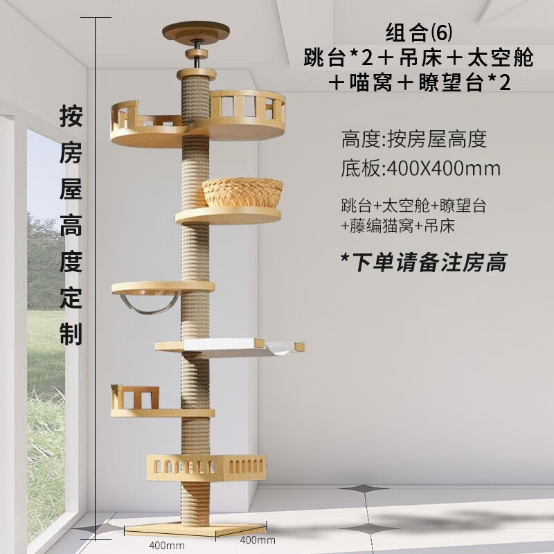 猫爬架通天柱实木猫树猫窝太空舱一体通天剑麻猫爬柱不占地多层猫跳台猫玩具猫别墅 套餐【六】跳台*2+吊床+太空舱+喵窝+瞭望台*2 下单备注房高