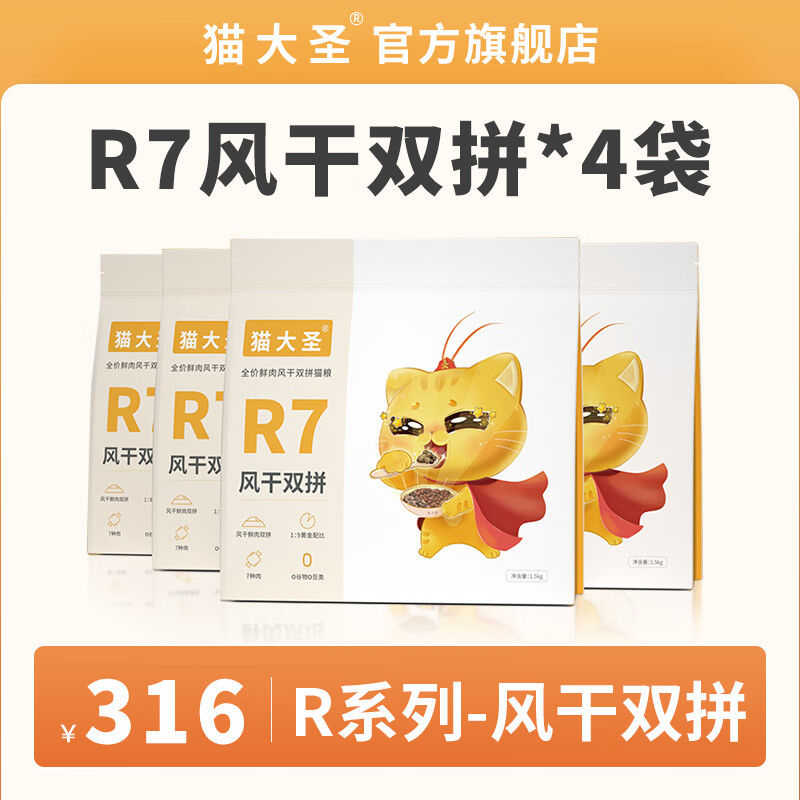 猫大圣R8鲜肉风干猫粮成猫幼猫通用双拼无谷猫粮增肥发腮 R7双拼1.5kg*4袋