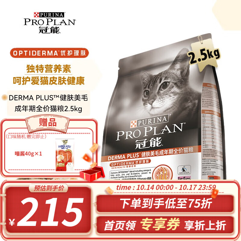 冠能(PRO PLAN)猫粮 成猫猫粮 皮肤呵护控制长毛 皮肤病专用2.5kg 2.5kg