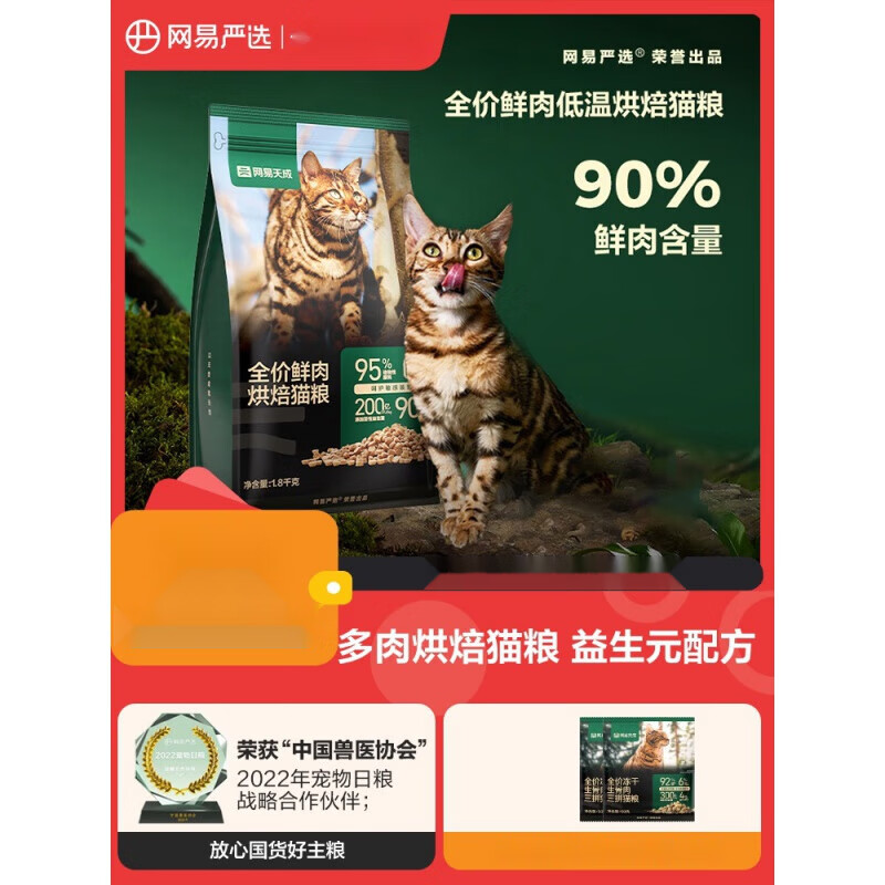 网易天成全价鲜肉低温烘焙猫粮天然无谷全价全阶段成幼猫粮 鸡肉口味 1.8kg