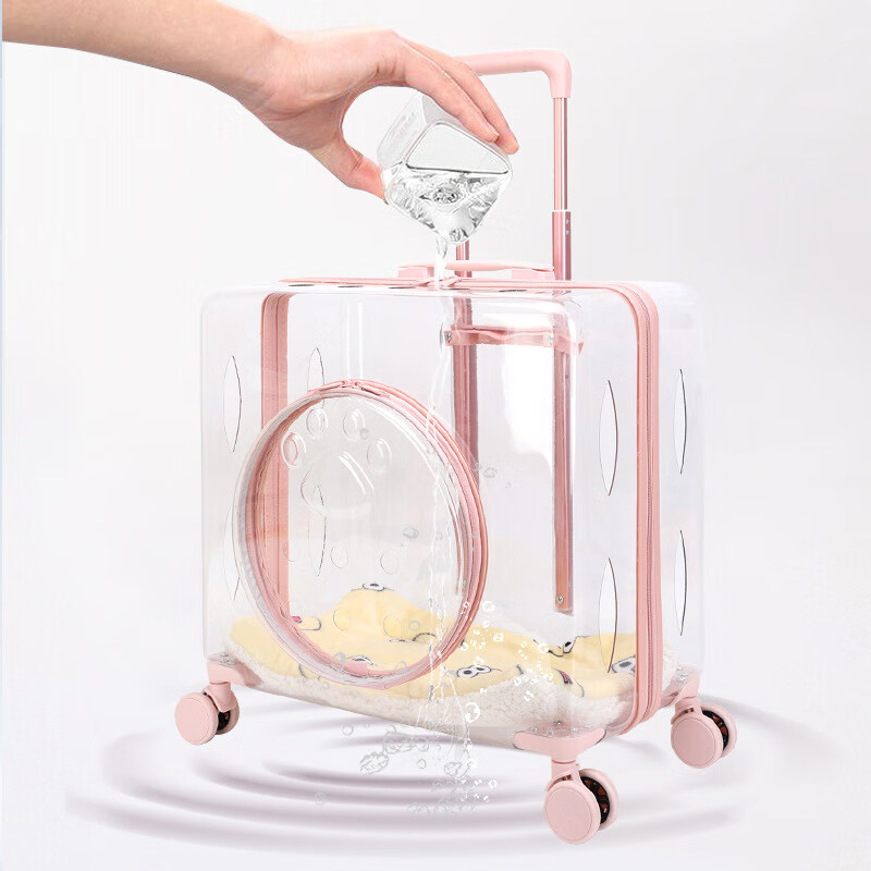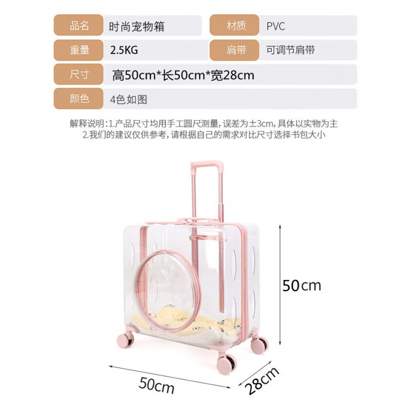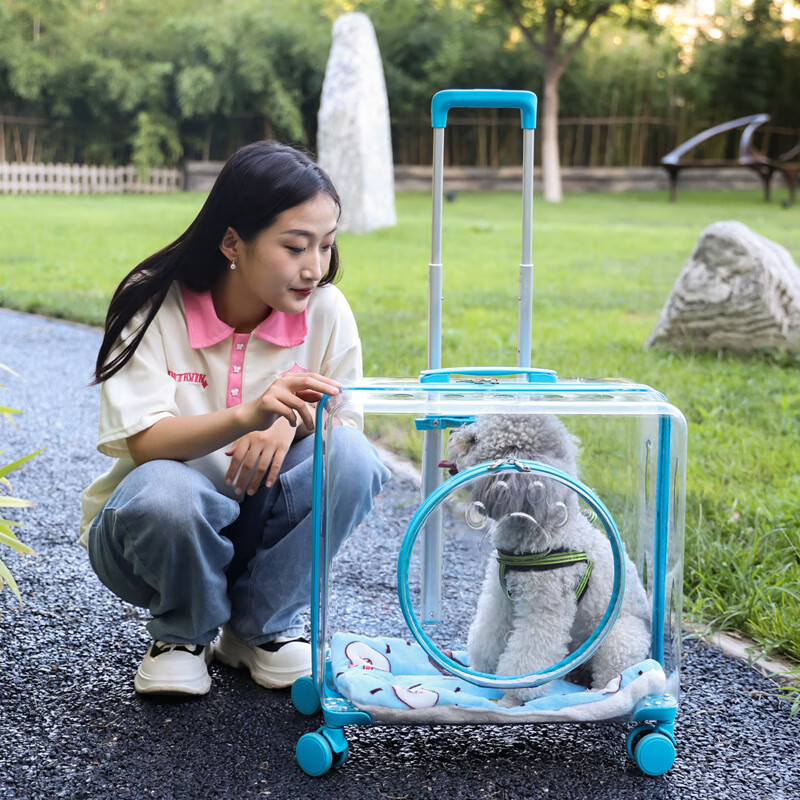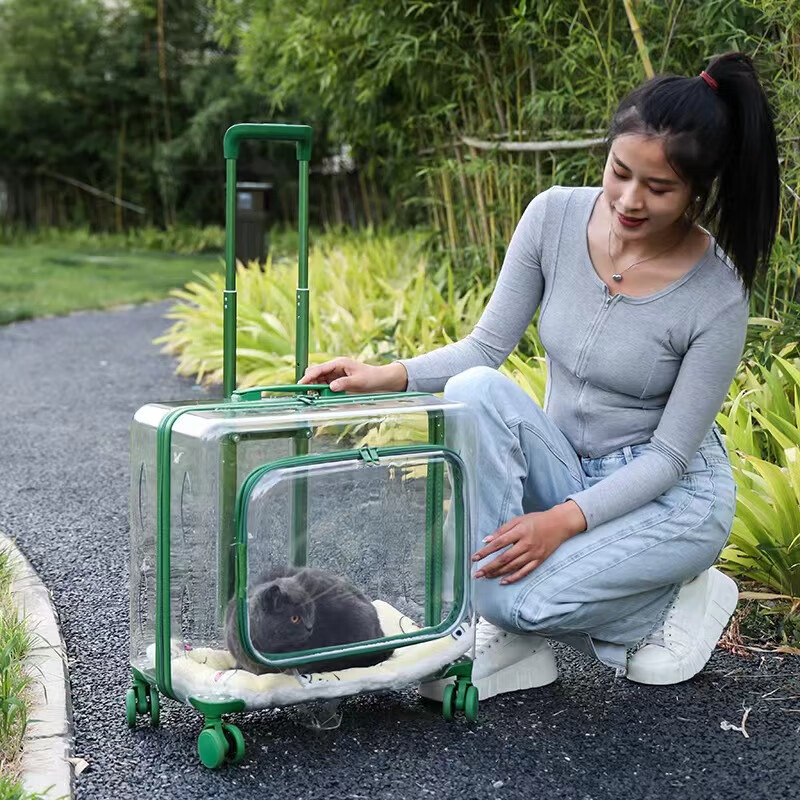 喀蔻宠物外出拉杆猫咪狗狗透明大号太空舱猫箱猫笼狗笼狗推车 【绿色】带方形开门 带小垫子