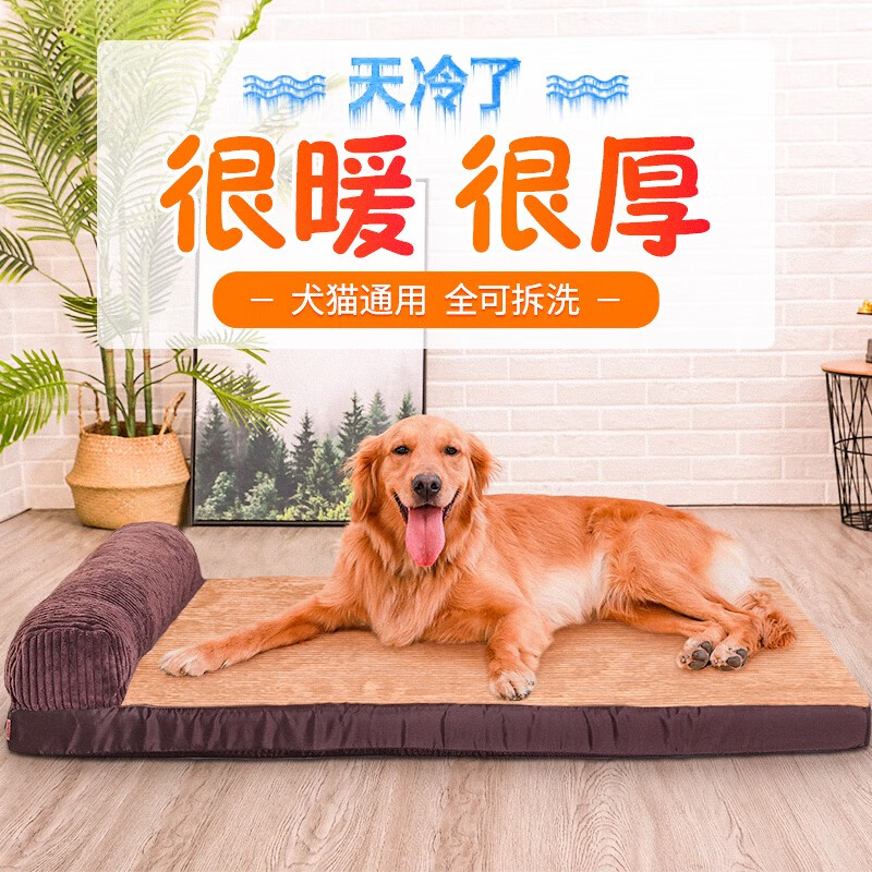 hoopet金毛狗窝秋冬中型大型犬狗床金毛拉布拉多边牧冬季保暖沙发宠物用品垫子 单面靠 M-(100cm 建议70斤内宠物睡)