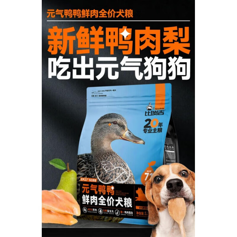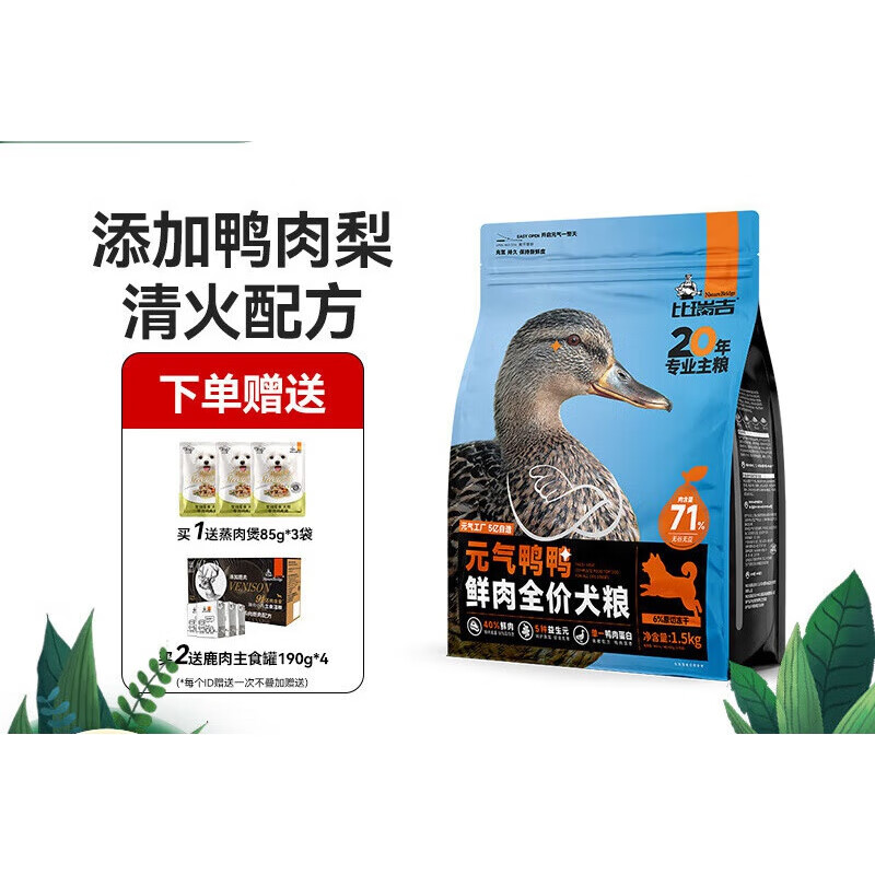 比瑞吉元气鸭肉梨冻干狗粮泰迪比熊金毛通用型成犬幼犬粮1.5kg 鸭肉梨清热降火】鲜肉全价犬粮 1.5kg