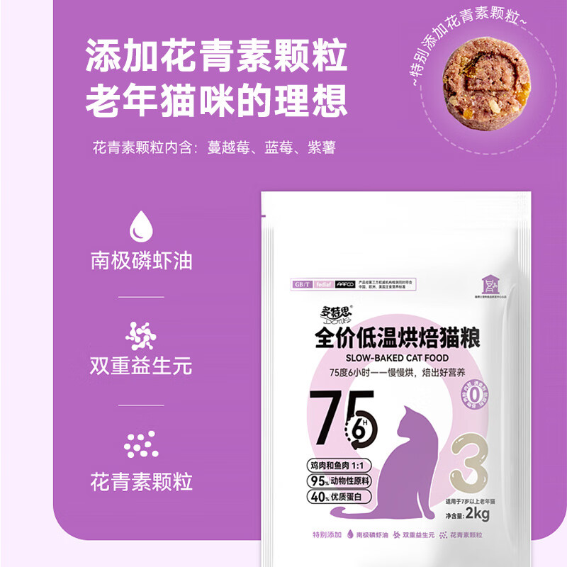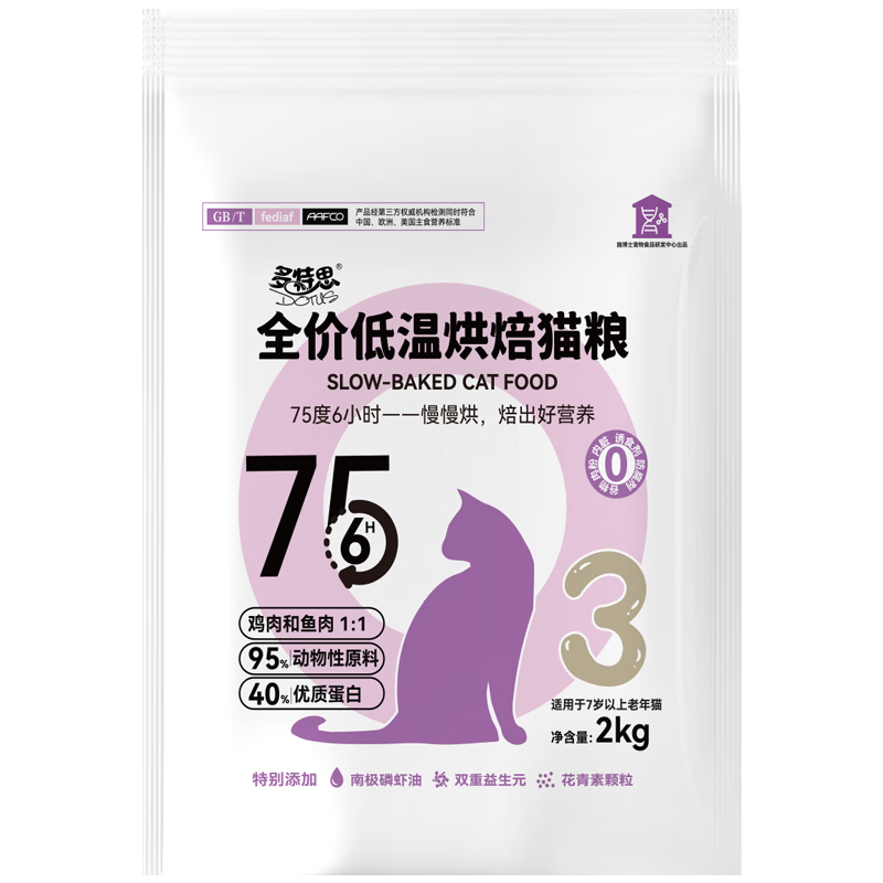 多特思猫粮低温烘焙粮成猫幼猫老年猫全价无谷无内脏猫咪食品 【7岁以上】3段 老龄猫粮2kg