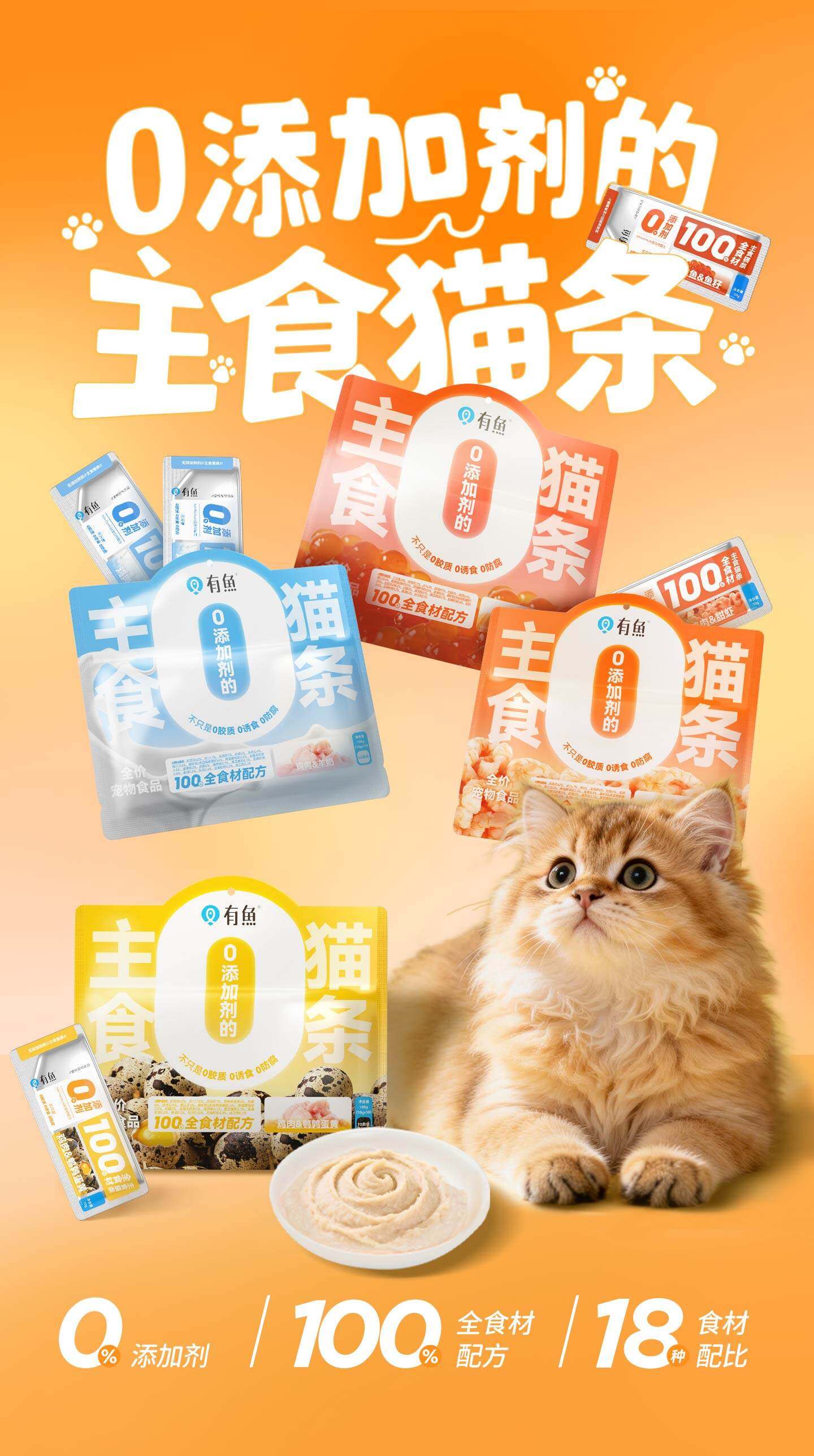 有鱼 0添加主食猫条猫零食10条/80条