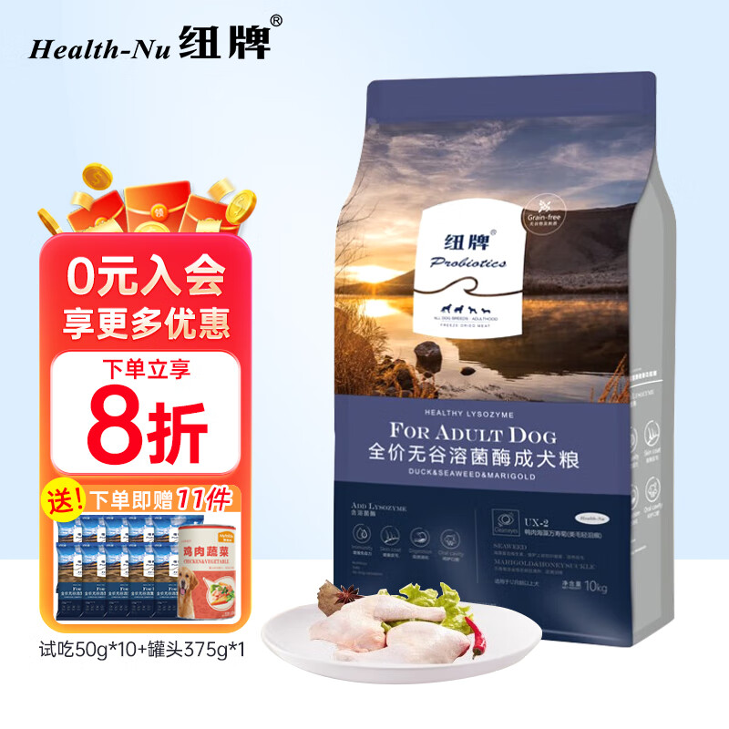 纽牌狗粮 UX2无谷全价成犬粮 低敏配方鸭肉护肤美毛泰迪萨摩耶成犬通 UX-2无谷成犬粮10kg