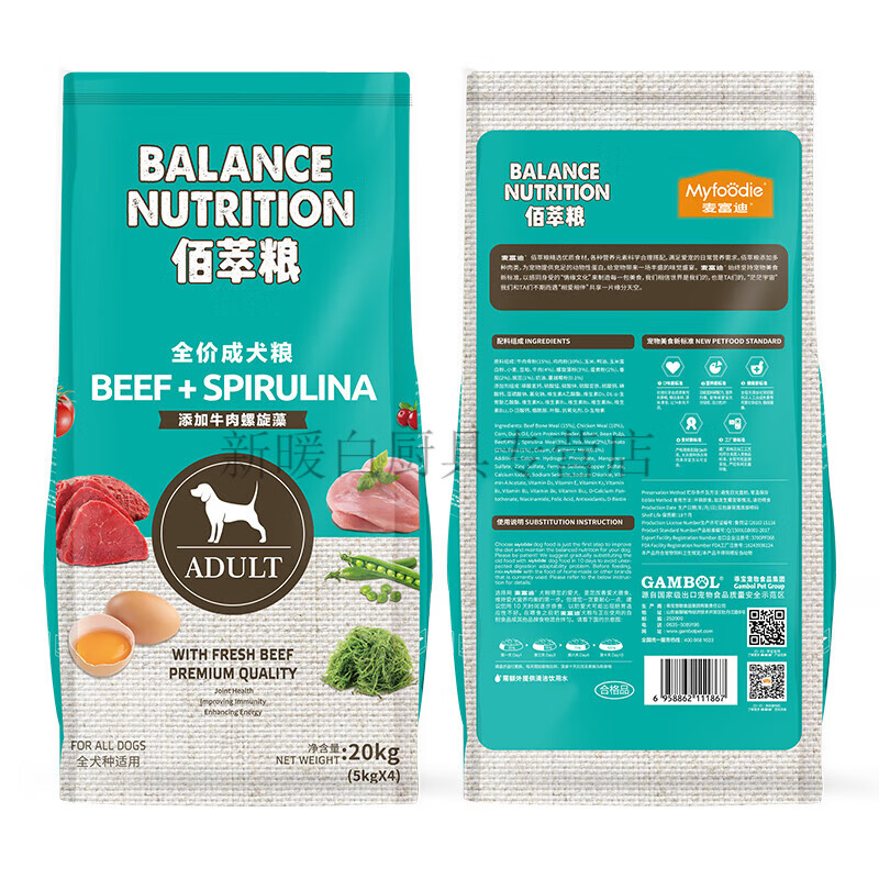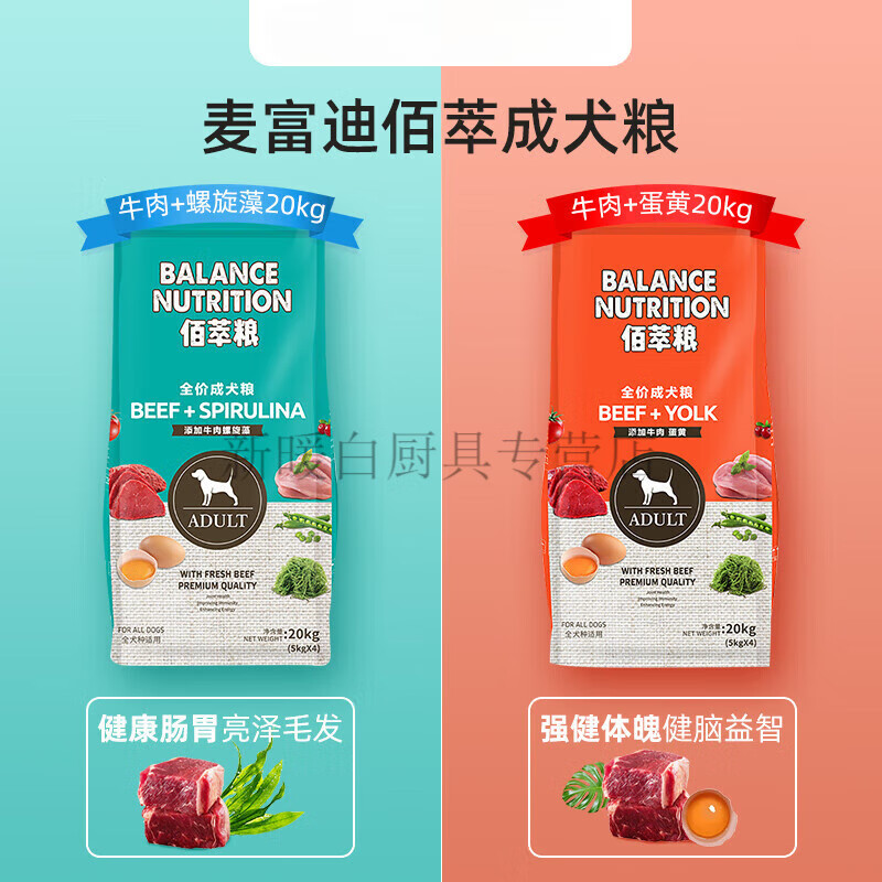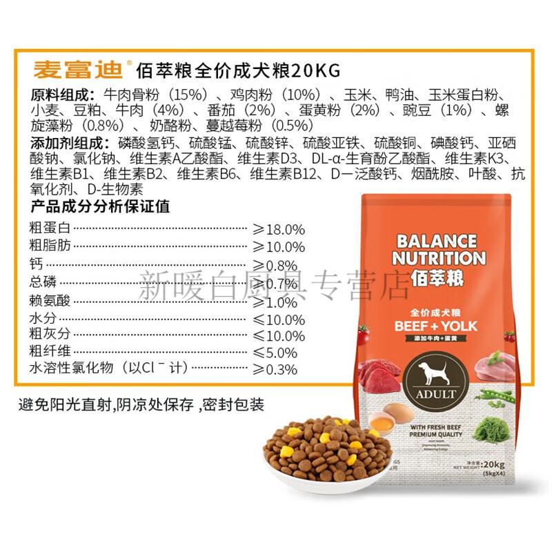 麦富迪(Myfoodie)麦富迪狗粮40斤佰萃牛肉蛋黄通用型小型中大型成犬粮泰迪金毛20kg 牛肉螺旋藻成犬粮20kg 20kg/18kg拍对应选项即可