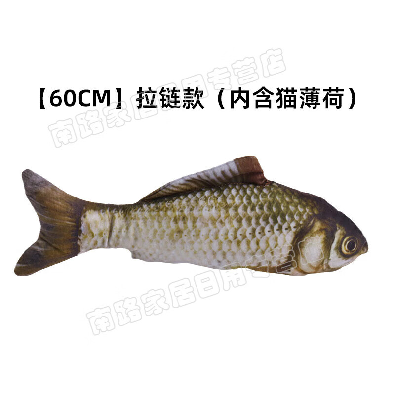 猫咪玩具自嗨解闷猫薄荷磨牙棒耐咬幼猫抱枕仿真鱼逗猫棒宠物用品 [草鱼款超大号]约60C/M有拉链(内