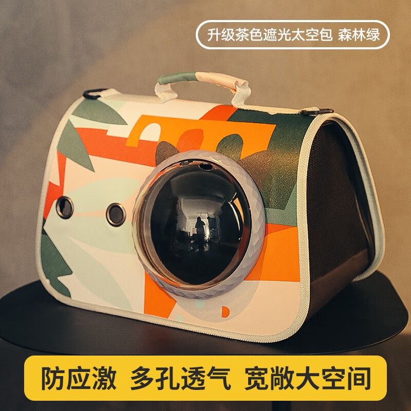 KimPets猫包外出宠物便携单肩书包太空舱背包狗狗猫咪猫笼子外带携带用品 茶色遮光透气太空包-森林绿 (0-12斤左右宠物使用)40*26*26