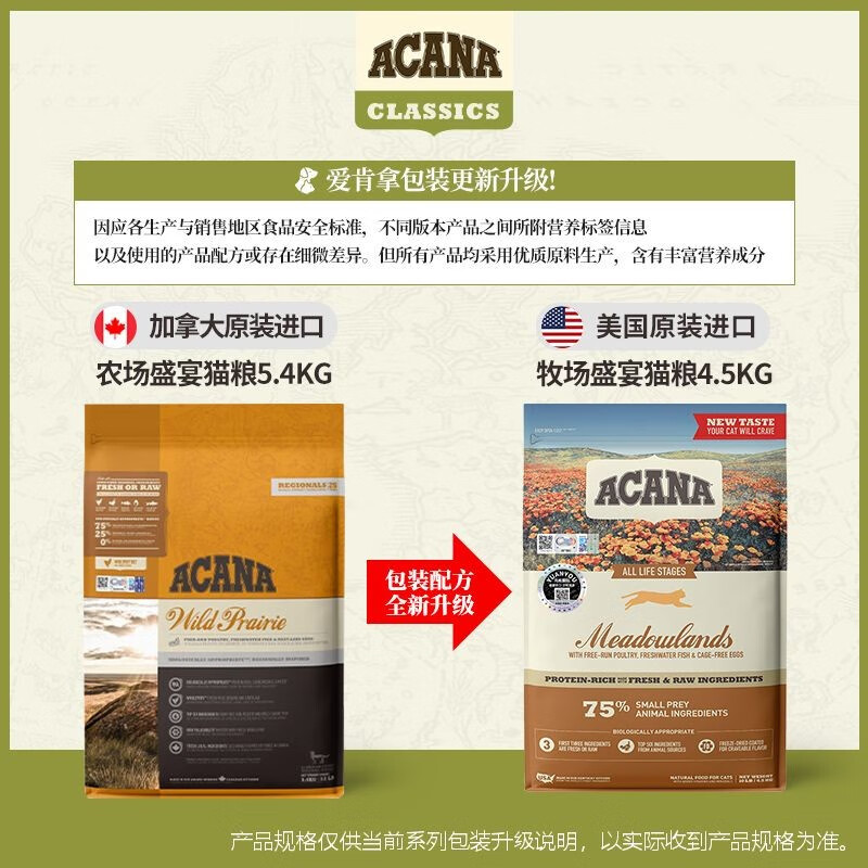 ACANA爱肯拿牧场盛宴猫粮鸡肉成年猫幼猫通用高蛋白粮蓝猫金银渐层4.5kg美国进口 鸡肉 4.5kg 全阶段