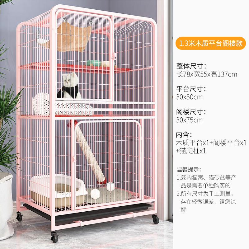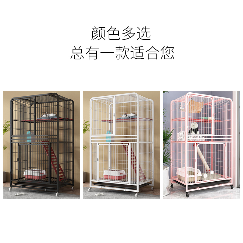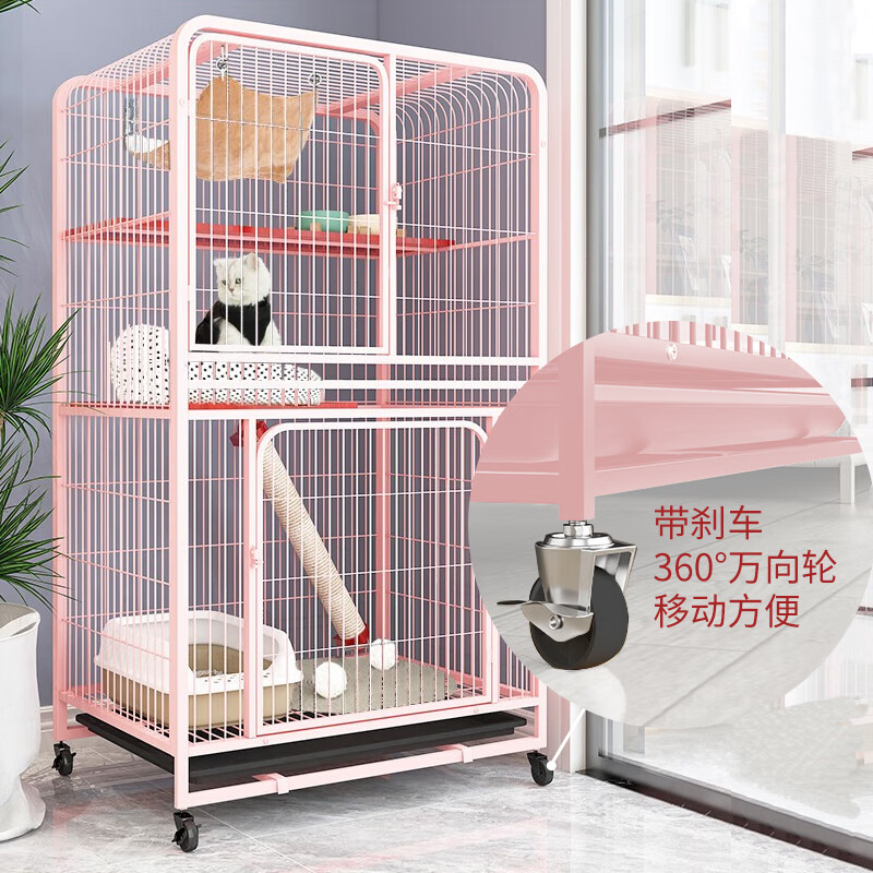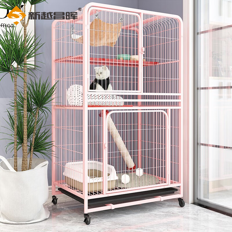 新越昌晖猫笼子 大号方管猫别墅三层猫柜 宠物猫咪房子猫窝猫屋 幼猫通用猫舍77*52*133cm 粉色XY-ML05F