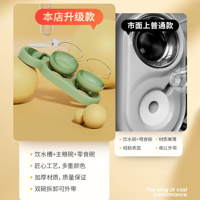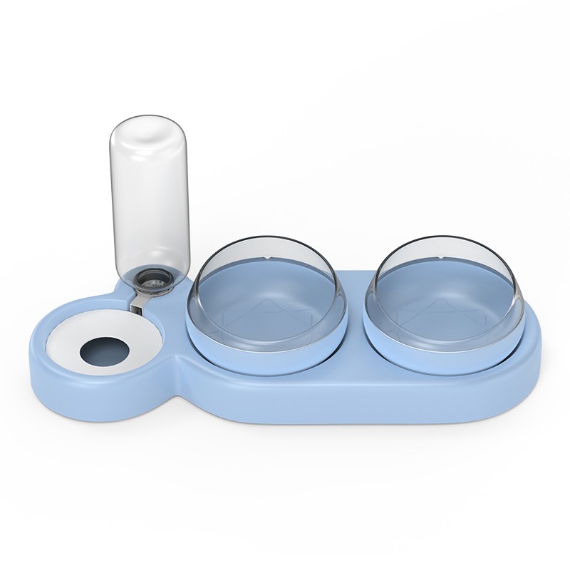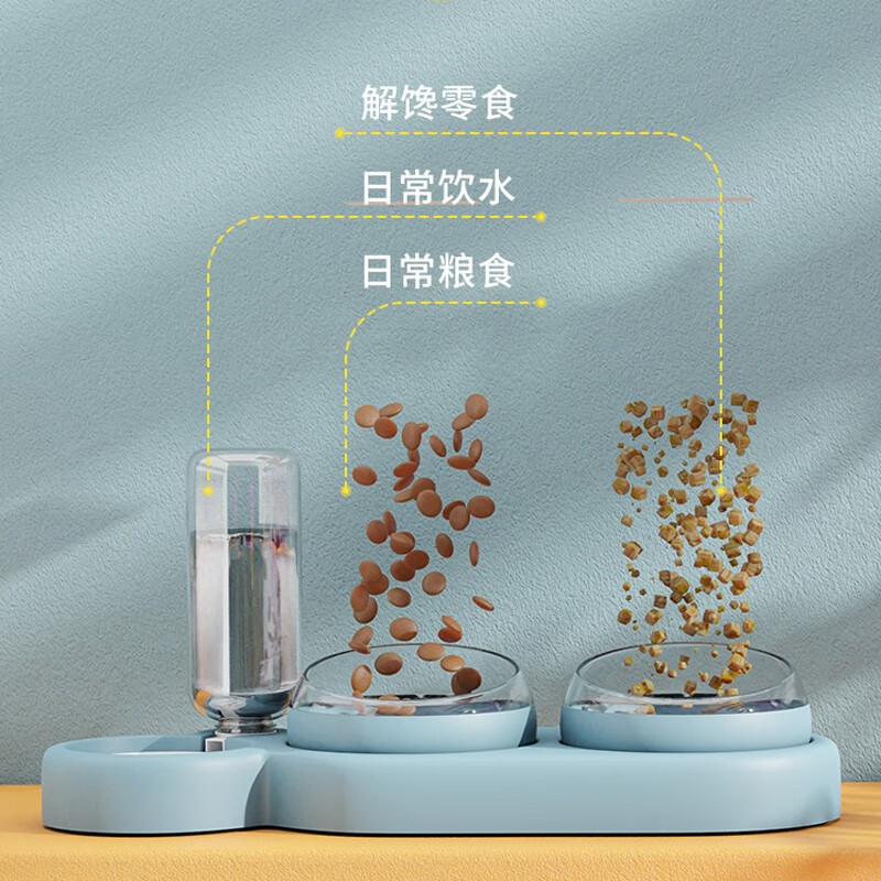 疯狂的小狗 猫碗双碗护颈自动饮水狗碗猫食盆防打翻猫粮猫咪碗狗饭盆 三合一碗蓝色
