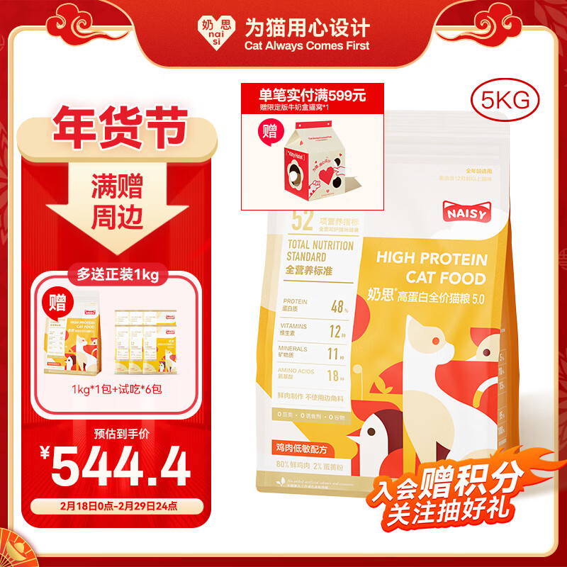 奶思猫粮鸡肉低敏配方5kg高蛋白鲜肉全价营养成幼猫粮