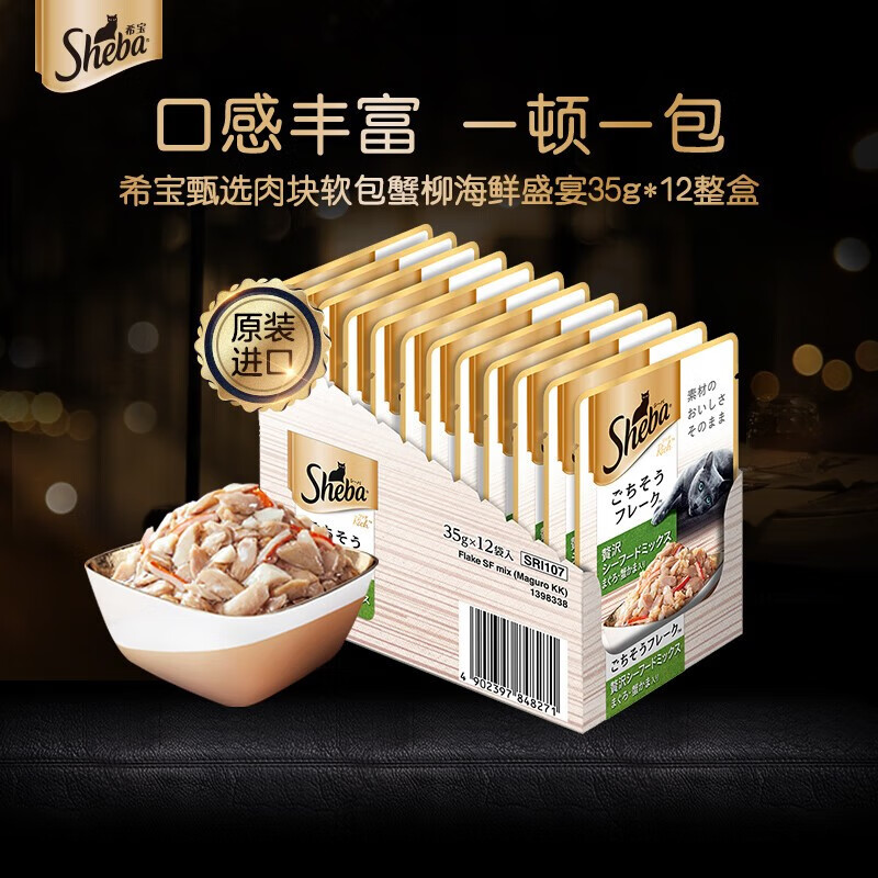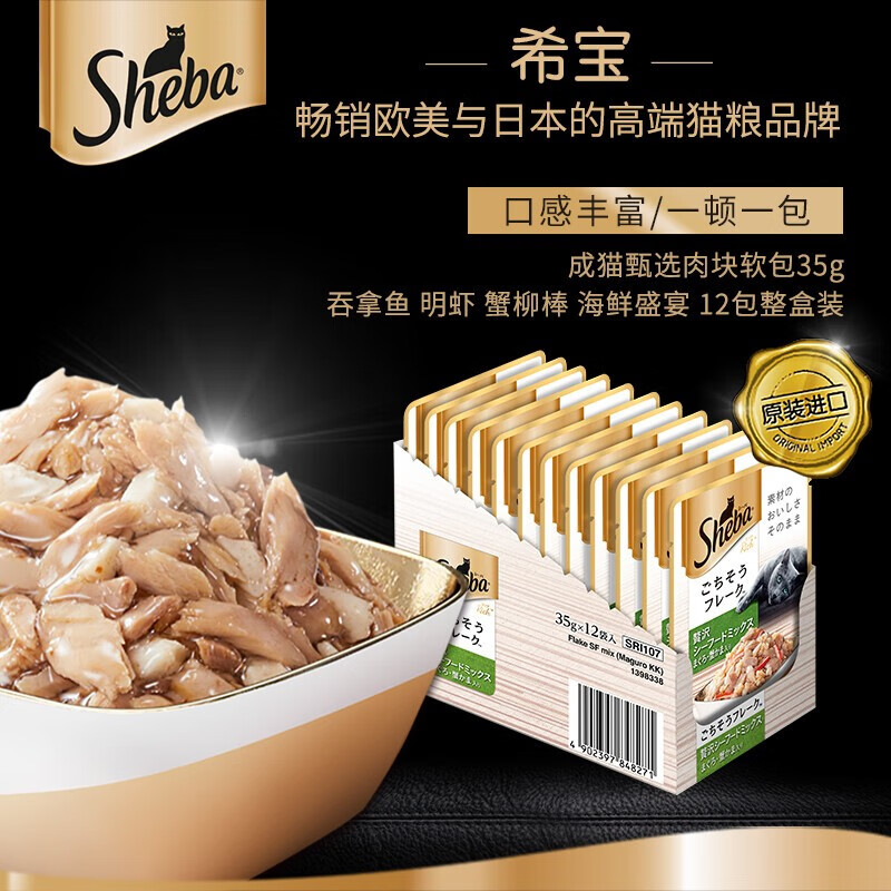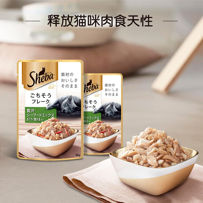 希宝(Sheba)原装进口猫粮肉块软包海鲜盛宴成猫35g*12整盒装白金妙鲜包 【12包】吞拿鱼蟹柳海鲜盛宴