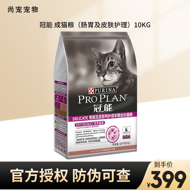 冠能(PRO PLAN)猫粮2.5kg 成猫幼猫全价猫粮 全阶段主食猫干粮 【胃肠及皮肤呵护】成猫粮 10kg