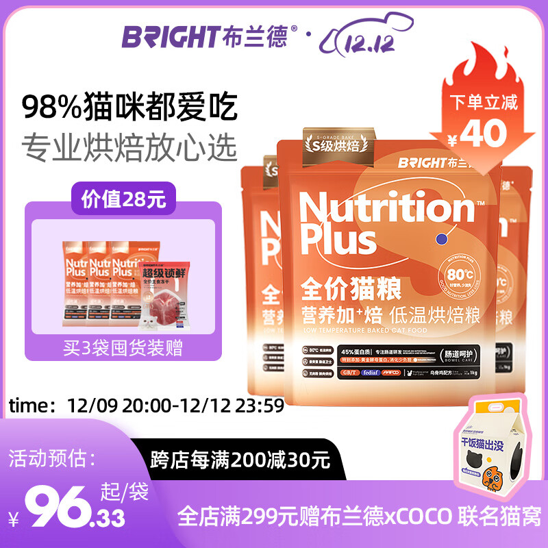 布兰德烘焙猫粮预售鲜肉乌骨鸡囤货6斤 实发1kg*3包(含附件及赠品)