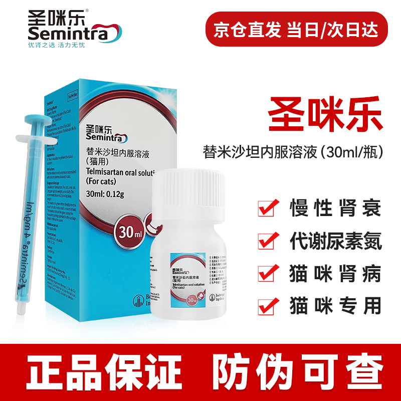 勃林格圣咪乐semintra替米沙坦溶液猫咪口服液肾脏护理液调理尿蛋白宠莱富