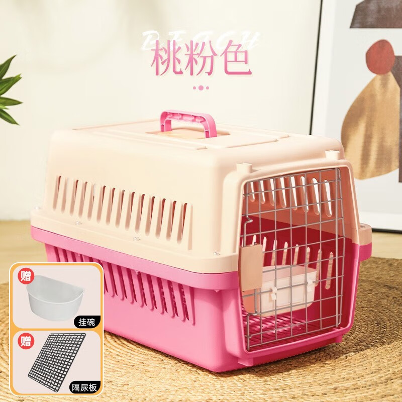 华元宠具(hoopet)宠物航空箱狗狗托运箱猫咪外出便携车载狗笼子小型中型大型犬专用 粉色款 带拉杆、万向轮-建议体重120斤内