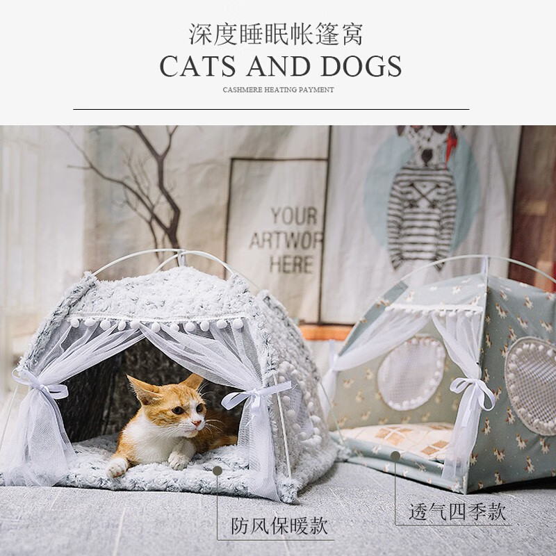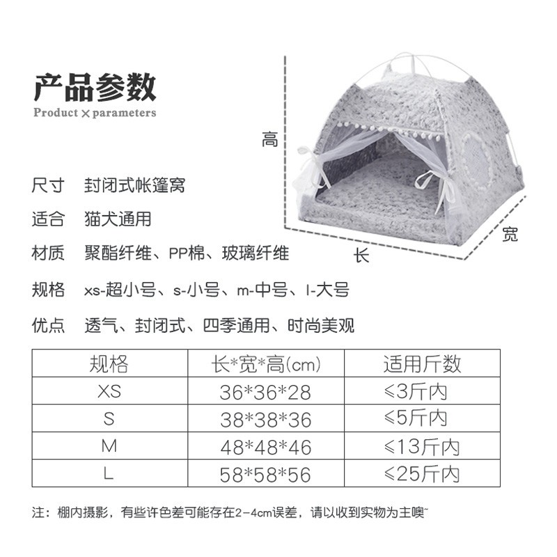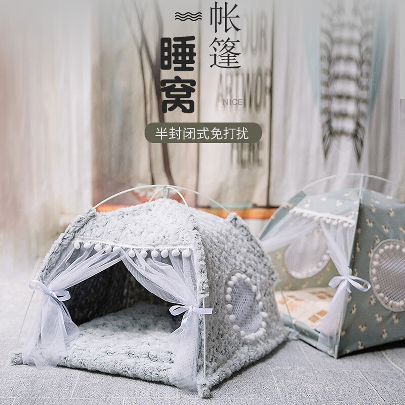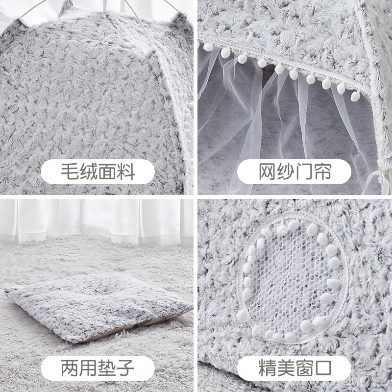 Dr.Bio猫窝冬季狗窝网红帐篷夏季四季通用猫屋猫床凉席小型犬幼犬狗垫子冬季保暖宠物用品 灰色毛绒款M号(13斤内宠物)