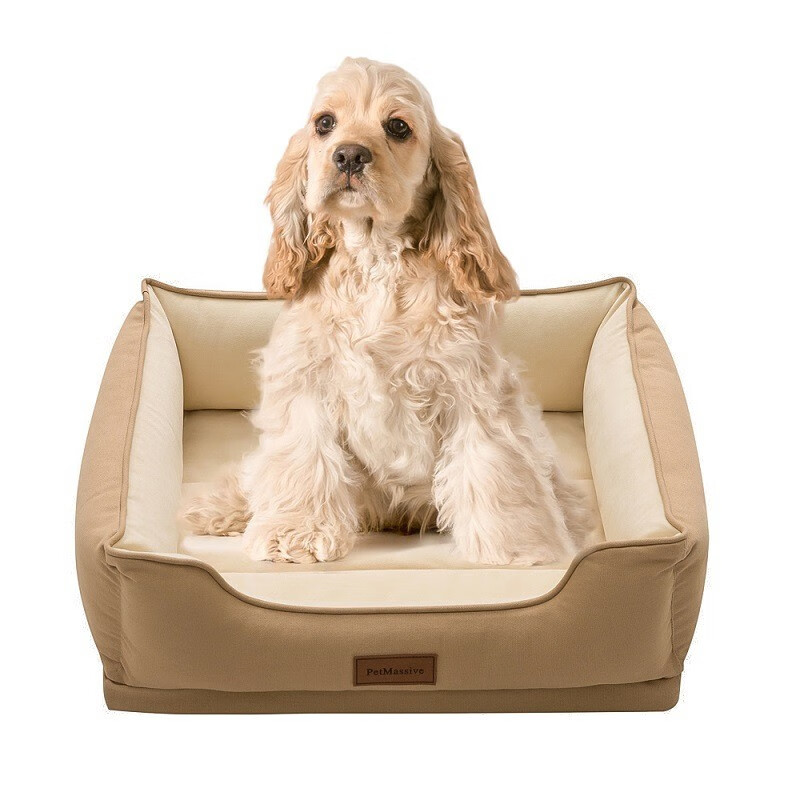 PetMassive狗窝保暖可拆洗四季通用宠物猫窝舒适狗垫子狗窝室外柯基小中型犬 方形窝(耐磨耐咬)卡其色 中号:75*62*25
