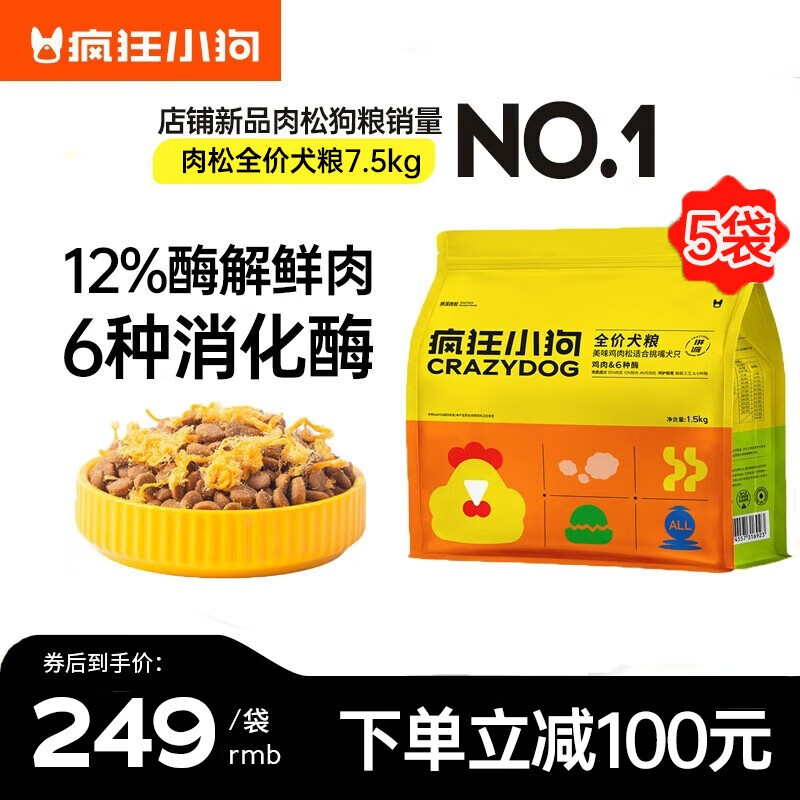 疯狂小狗 小型犬狗粮泰迪博美柯基成犬幼犬通用全价肉松狗粮 【升级酶解工艺】肉松狗粮7.5kg 全犬期