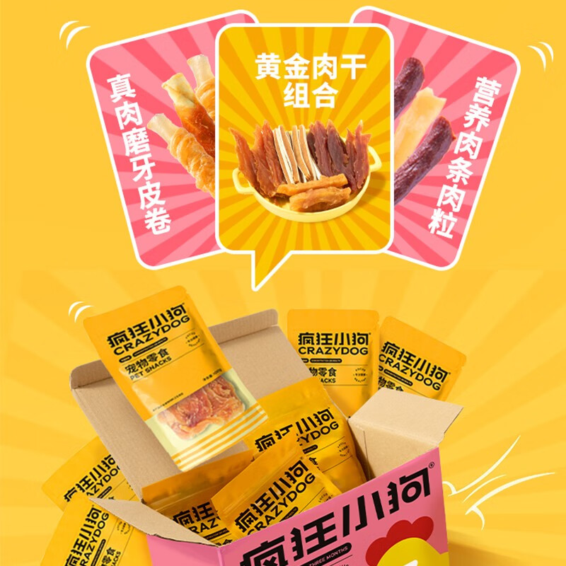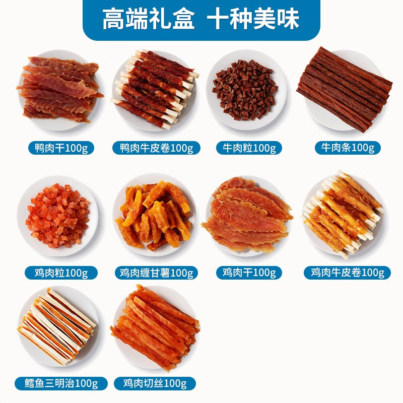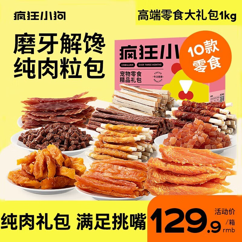 疯狂小狗 狗狗零食磨牙棒鸡肉干火腿肠礼盒装宠物零食大礼包 纯肉礼盒1000g 【10种零食 】