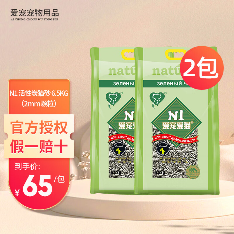 N1爱宠爱猫n1猫砂 6.5kg豆腐猫砂混合猫砂除臭无尘易结团可冲马桶猫沙豆腐砂 活性炭豆腐猫砂6.5kg*2包2mm颗粒