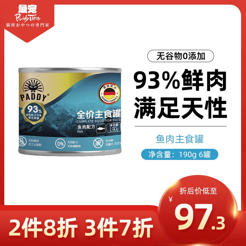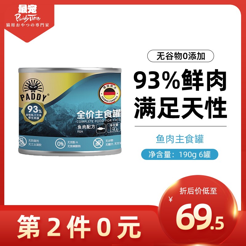 澳洲品牌 最宠(Paddy Time)猫湿粮 猫咪罐头全价无谷主食级湿粮软包成猫幼猫通用猫咪主食罐头 最宠主食猫罐-鱼肉190g*6罐
