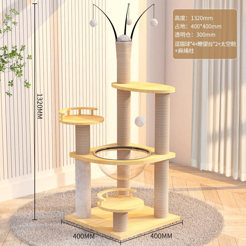 猫爬架猫窝猫树一体猫抓板猫架子大型抓柱通天柱跳台太空舱四季通 猫爬架-基础款【1.32M双跳台】