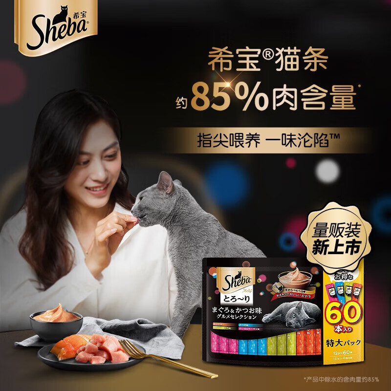 希宝(Sheba)猫条猫咪零食泰国进口湿粮猫罐头宠物成猫老年通用营养猫零食 60支-新款混合口味