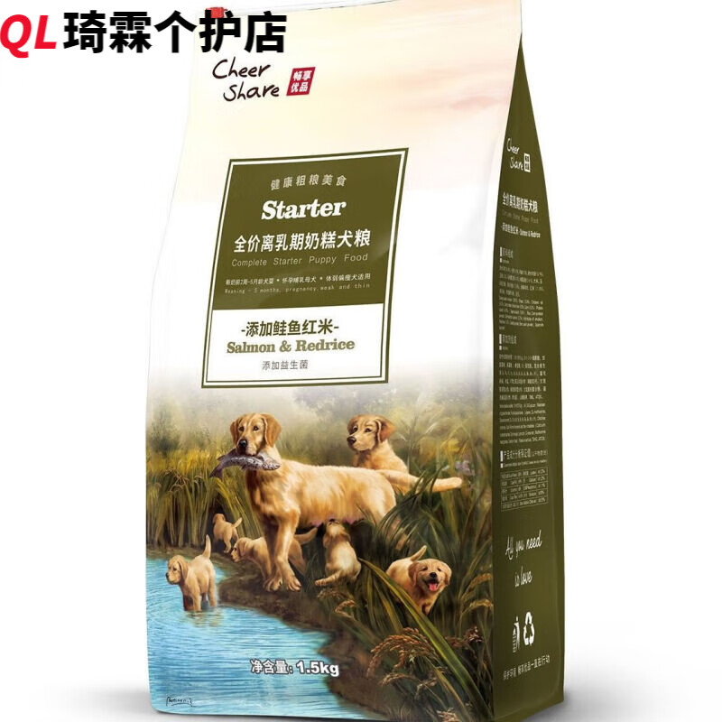 畅享优品狗粮狗粮鸡肉燕麦幼犬狗粮金毛中大型全犬萨摩牛肉紫薯经典 畅享鲑鱼红米奶糕犬粮1.5kg