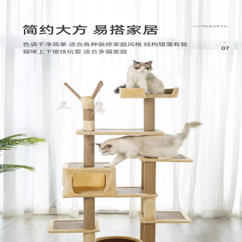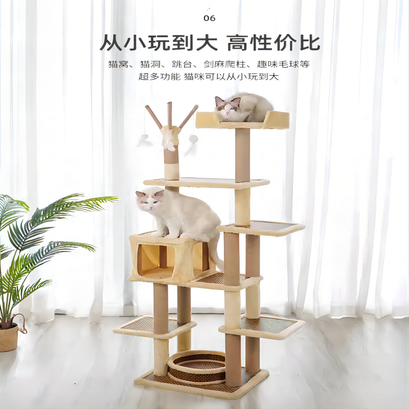 兰猫爬爬 九层 藤席 竹席 猫爬架 超多功能一体 特大空间 剑麻爬柱 拼图大型款PT-2 拼图大型款PT-2【九层款带4个窝 4个跳台】