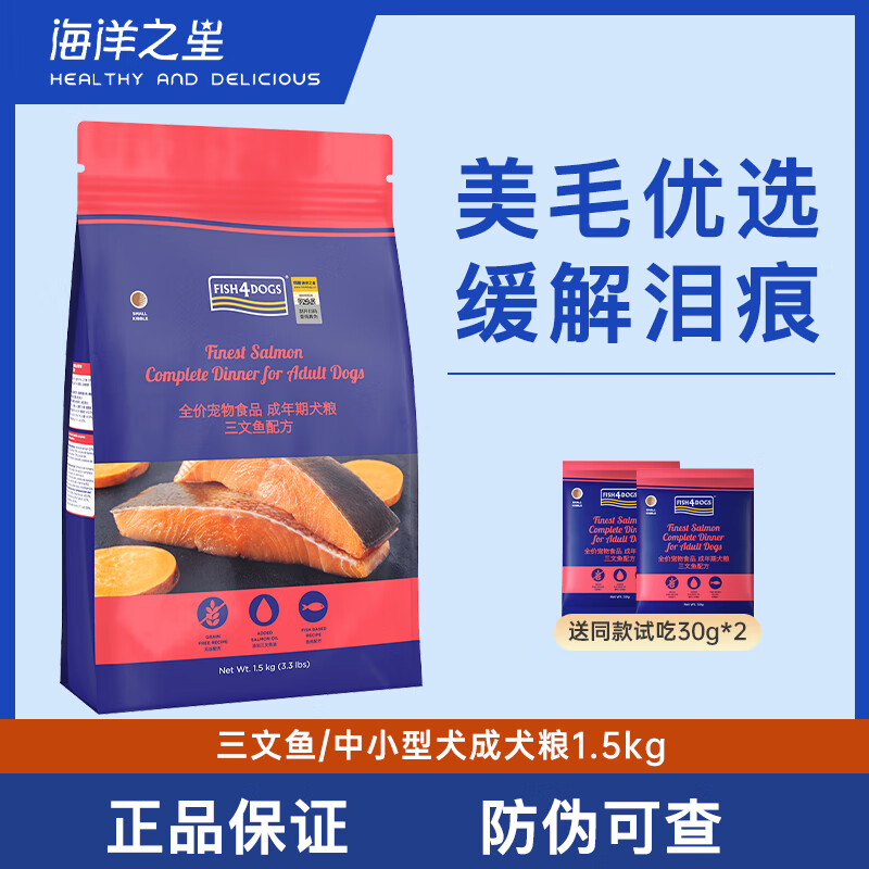 海洋之星(fish4dogs)狗粮通用小型成犬泰迪比熊柯基博美天然无谷三文鱼1.5kg 【三文鱼】小型犬成犬粮1.5kg 1.5kg