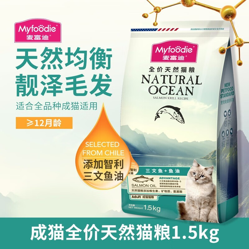 麦富迪猫粮10kg三文鱼鱼油成猫幼猫奶糕猫主食生骨肉全价英短 三文鱼鱼油配方成猫粮1.5kg