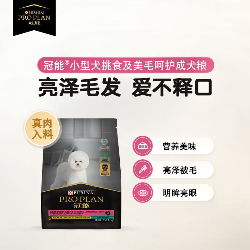 冠能犬粮挑食狗粮 美毛亮眼配方 高消化吸收 呵护牙齿 关节健康 小型成犬 挑食美毛呵护配方2.5kg