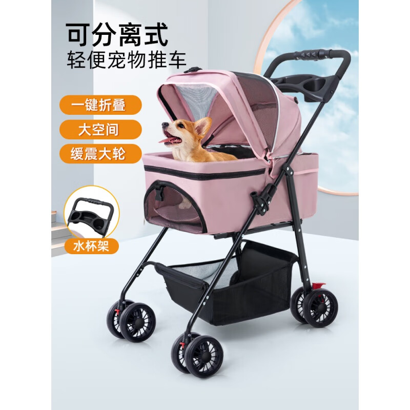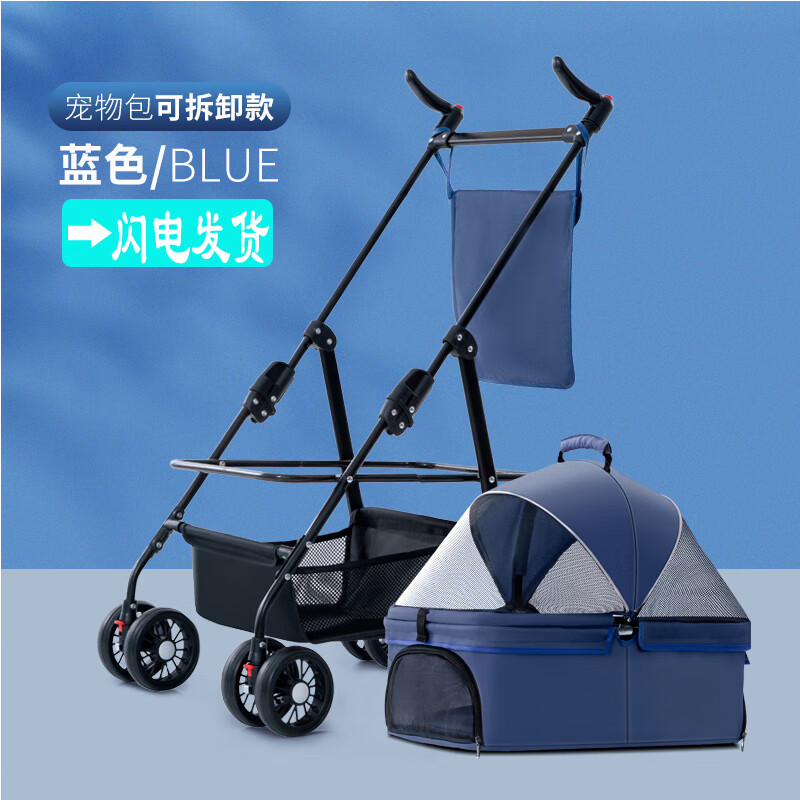 兰叙宠物推车狗狗代步猫咪泰迪手推车外出中小型狗拉车轻便可折叠分离 蓝色?【可分离 提篮款】 (可承