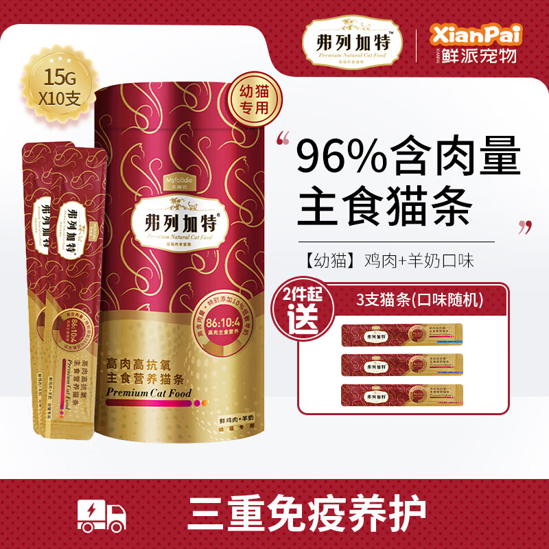 弗列加特猫条猫零食猫条零胶质零防腐剂幼猫成猫主食级猫条 【幼猫专用】鸡肉 羊奶15g*10支