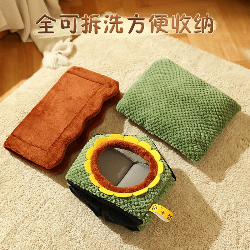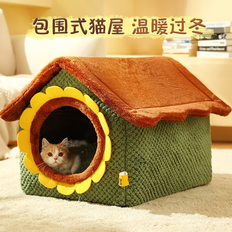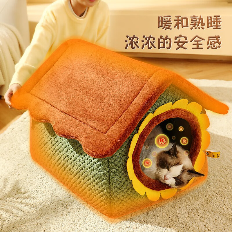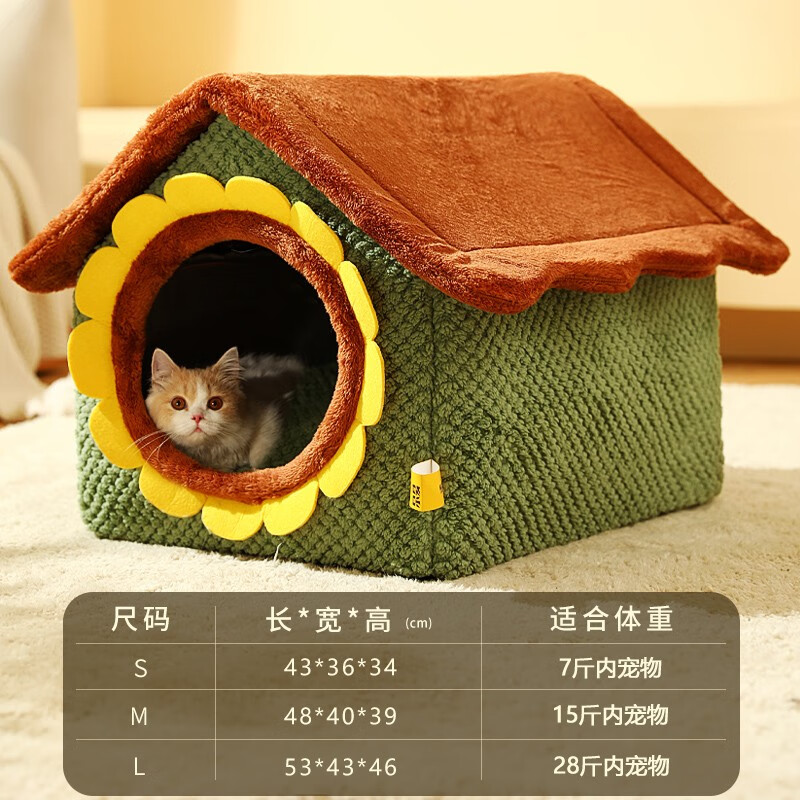 Kimpets猫窝房子型四季通用小型犬狗窝冬天保暖可拆洗宠物猫咪床狗屋用品 向日葵—【升级加棉加厚】 M:适合15斤内萌宠-【48*40*39cm】95