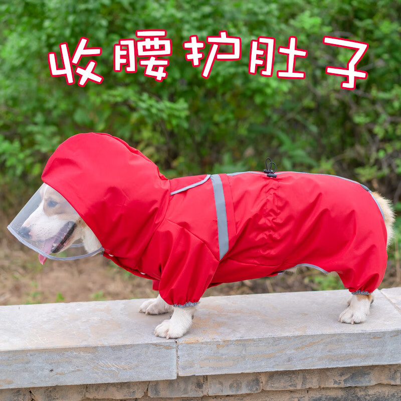 余三哥柯基雨衣 狗狗雨衣四脚防水全包宠物用品狗狗衣服夏季的背心中型 新升级红色收腰 腹部调松紧 3XL码(33-40斤)