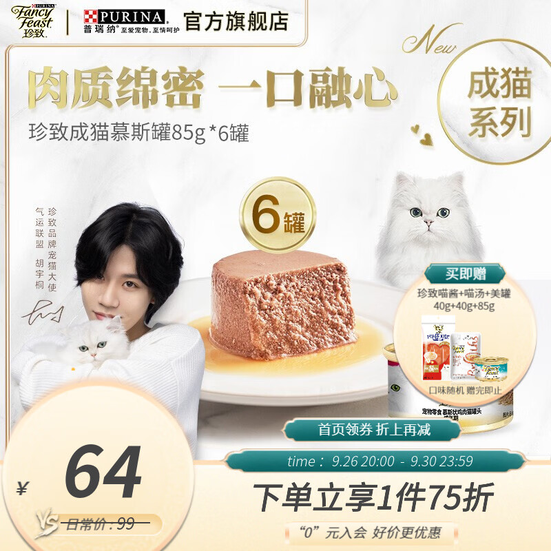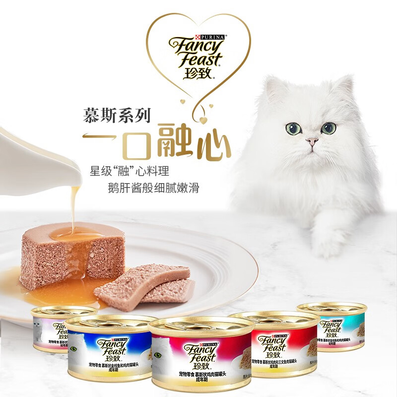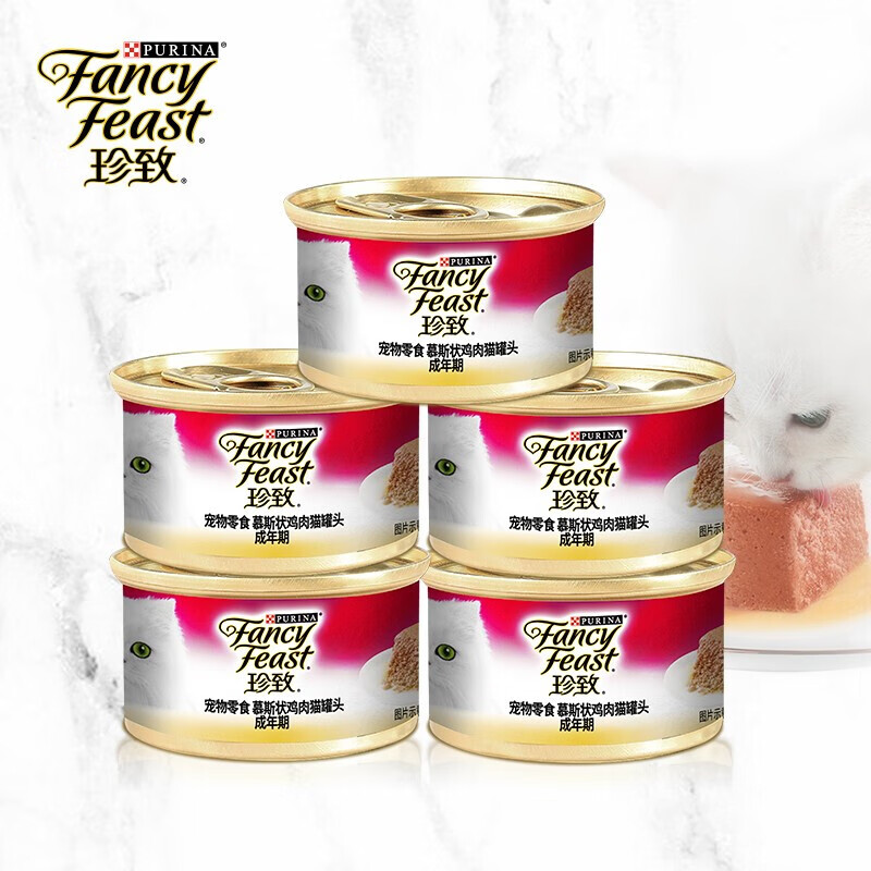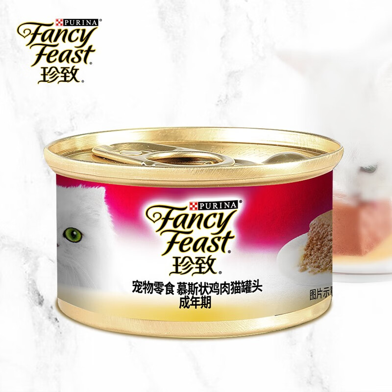 珍致(FancyFeast)慕斯猫罐头 进口湿粮罐头 猫零食 成猫鸡肉味85g*6
