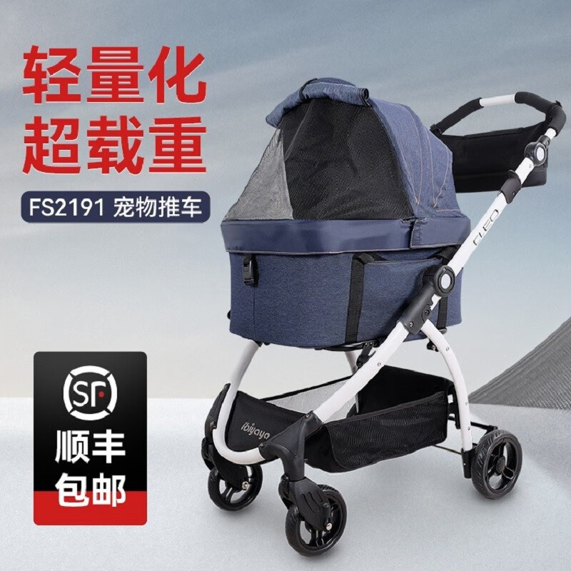 依比呀呀(ibiyaya)ibiyaya宠物推车轻便可折叠分离式外出小型犬猫咪狗狗推车FS2191 率性蓝