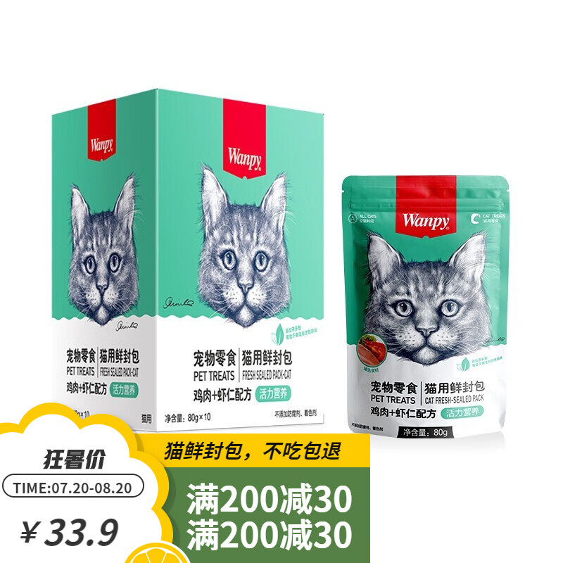 【京优选】顽皮妙鲜包猫零食鲜封包800g(80g*10包) 猫条猫湿粮增肥猫罐头成猫咪宠物零食整盒装 虾仁10包盒装