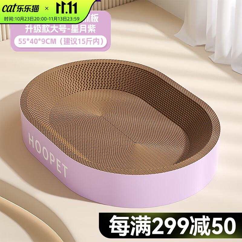 华元宠具(hoopet)猫抓板耐磨不掉屑猫窝一体猫咪抓盆特大号圆形四季通用瓦楞纸玩具 椭圆-星月紫-大号