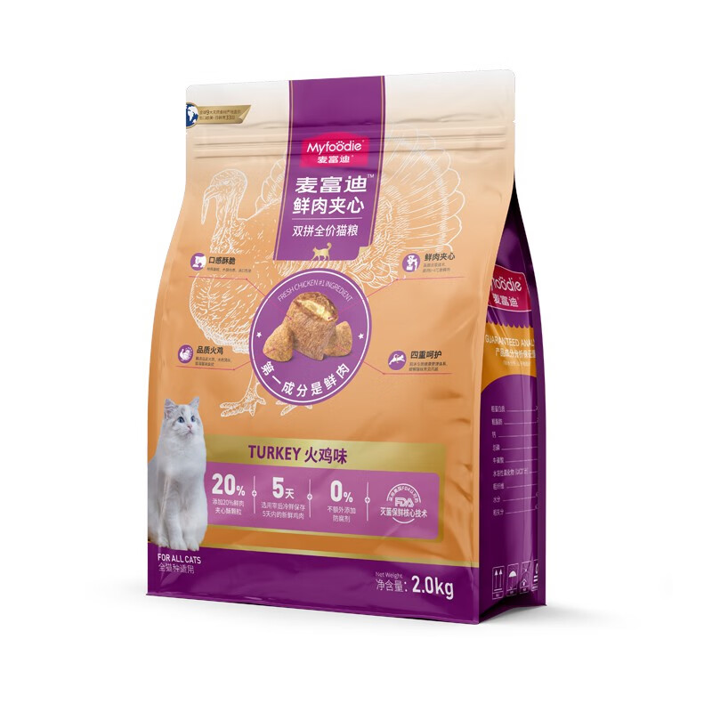 麦富迪 猫粮 鲜肉夹心双拼粮布偶蓝猫英短美短全期通用型全价天然粮 火鸡鲜肉夹心|升级款2kg